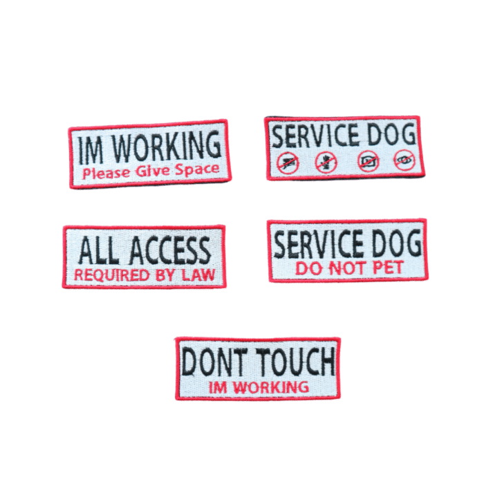 This bundle contains the essential patches for working service dogs. Features bright red, white and black colors to clearly show the boundries that your k9 needs when working.